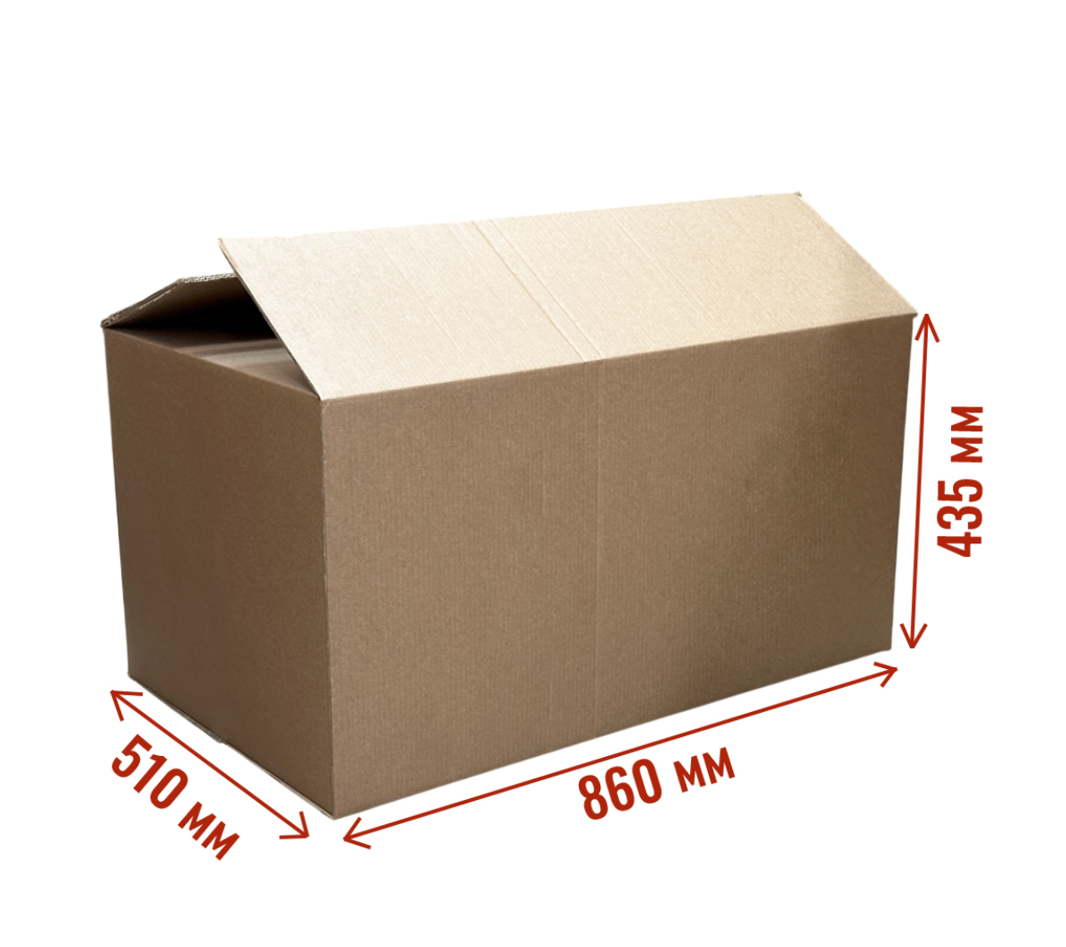 Коробка упаковочная, размеры 860 × 510 × 435 мм - большая прочная коробка из бурого гофрокартона. Идеально подходит для упаковки товаров для маркетплейсов. Экологичная, надёжная и удобная в сборке - отличный выбор для транспортировки крупногабаритной продукции